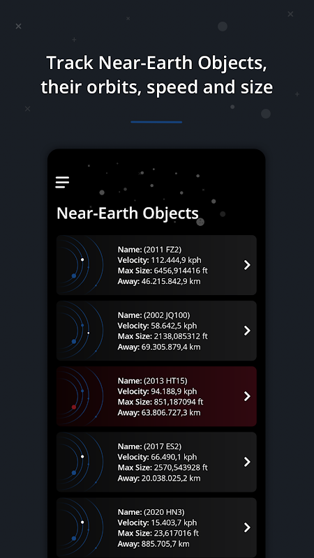 ➕ Просмотр анимированных карт НАСА на основе данных, которые отображают текущее состояние околоземных объектов (NEO) и обнаруживают потенциально опасные астероиды.