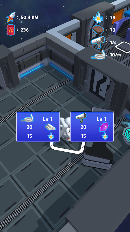 Play as an astronaut in a wrecked spaceship, repairing it; Power-ups, continue to complete space travel.