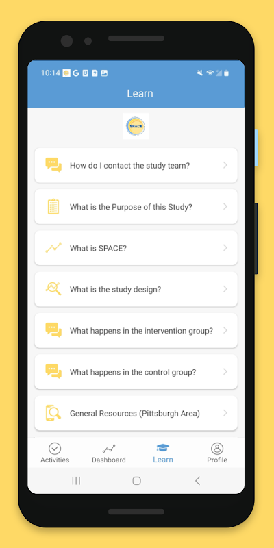 Приложение для участника исследования SPACE