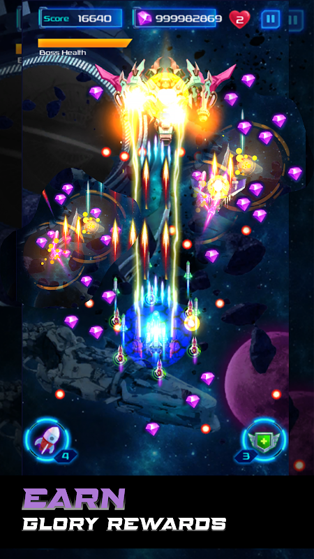 Galaxy Attack Alien Shooter: Strike Force обещает беспрецедентный опыт воздушных боев для космической военной игры. Улучшайте свой линкор, прежде чем вступать в игры по стрельбе на самолетах. Используйте собранные драгоценные камни между уровнями, чтобы увеличить свою силу, что облегчит уничтожение врагов.