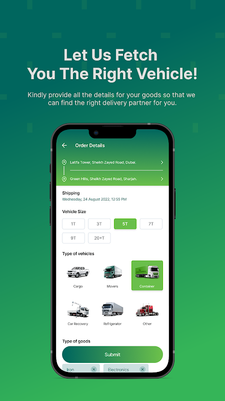 Приложение для бронирования близлежащих транспортных средств для перевозки ваших товаров
