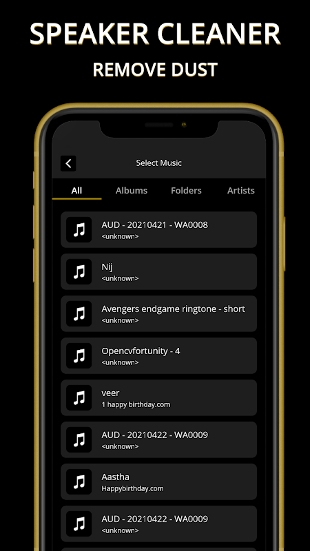 ➥ This Speaker Cleaner - Remove Dust application will create sounds and vibrations at different frequencies that will help you remove water from the speaker from your mobile phone. Position phone in such a way that the speaker is facing DOWN, Turn volume to the maximum, Disconnect headphones if connected. Improve sound quality by fixing my speaker dust and water ejector tools.