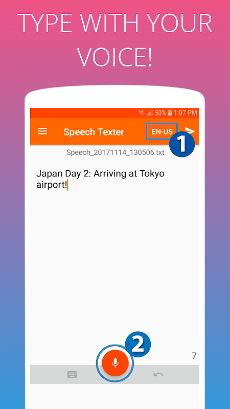 SpeechTexter — это мощное приложение для преобразования голоса в текст, которое обеспечивает непрерывное распознавание речи с помощью пользовательского словаря (знаки препинания, номера телефонов, адреса и т. д.), помогающего создавать длинные эссе, сообщения и отчеты, используя только свой голос. SpeechTexter ежедневно используют студенты, преподаватели, писатели, блоггеры по всему миру.