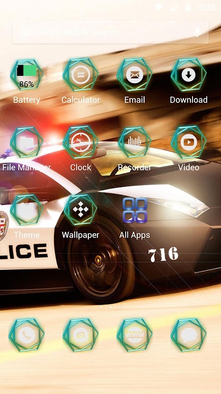 Free, beautiful, stylish for Android, this theme is specially designed for APUS Launcher. This Android theme includes unified HD icon pack, beautiful wallpaper and helps make your phone personalized and stylish.