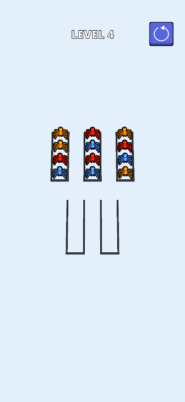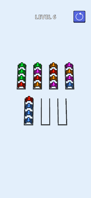 Spider Sorting — игра о группировке пауков по цвету. Цель игры — объединить всех пауков в группы со всеми остальными пауками того же цвета.