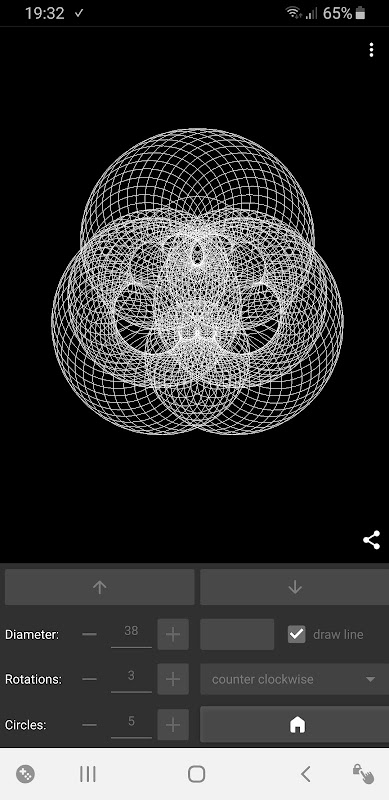 Помните спирограф? Теперь вы можете создавать рисунки, похожие на спирографы. Сложите до десяти кругов друг на друга. Пусть они вращаются вокруг друг друга и наблюдайте, как они рисуют безумные спирали.