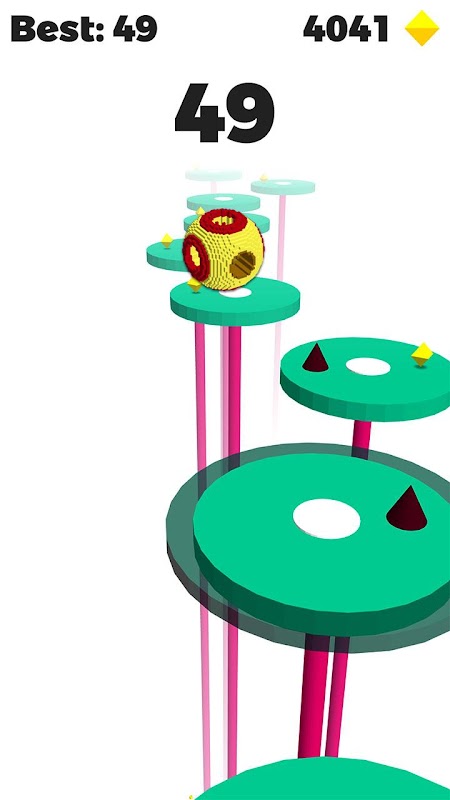 Dodge spikes, collect rubies and make insane perfect combos! Started from the bottom now we're here! Bounce off tiles and make as many hops as you can in this mind-blowing arcade action! Touch the screen and drag left or right to guide the ball from tile to tile. Don’t miss the path! Make insane combos and beat your friend's scores!