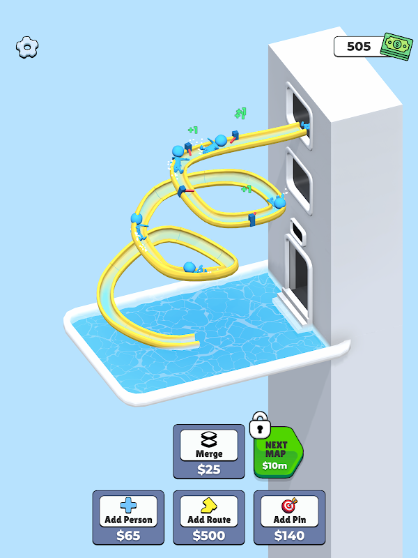 💧 Расширяйте свой парк: используйте свои доходы, чтобы добавлять новых персонажей, строить больше водных горок и улучшать своих персонажей, объединяя их для получения максимальной прибыли.