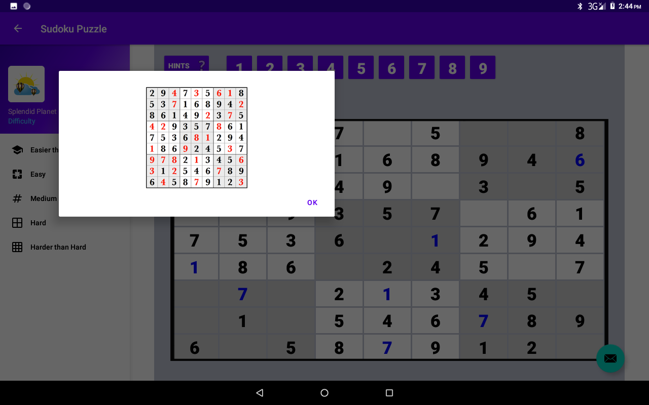 Текущая версия приложения содержит головоломки судоку.