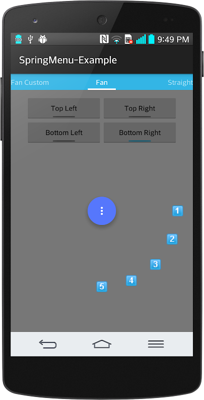 Easily create various pop-out springy menu's, 3 different types of menu's are supported out of the gate, straight, curved, and fan menu's.