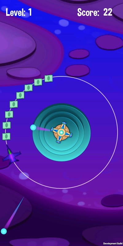 Ваш самолет застрял на орбите пули машины, собирая деньги, самолет должен избегать взрывчатых веществ, меняя направления вращения.
