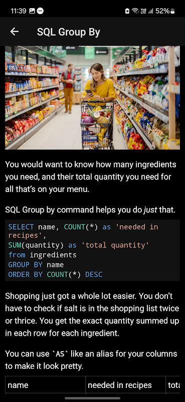 Вы получаете более 45 синтаксисов вместе с их описанием и простыми примерами в порядке их выполнения, которые помогут вам из первых рук.