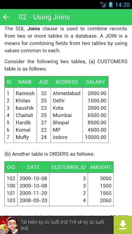 Информация SQL Tutorial - Kiwi Learn APK