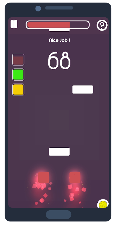 Tap left and right to move the squares. Avoid the white blocks and collect the other squares to fill up your super powers because you'll need them on your way to get you even further.