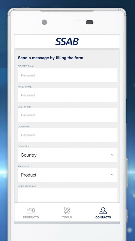 Приложение SSAB представляет продукт и контактную информацию для следующих стальных изделий из SSAB: