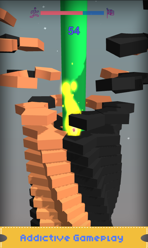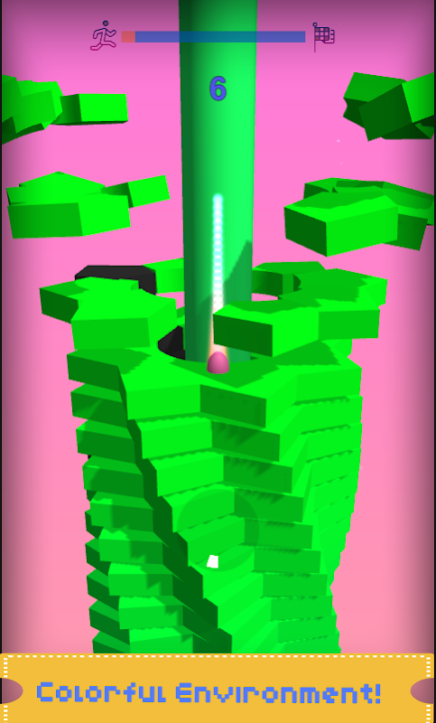 Нажмите и удерживайте экран и дайте мячу опуститься, не касаясь препятствий! Удерживайте как можно дольше, чтобы составить комбо и разбить черные блоки. Пусть мяч упадет со стопок спиралей.