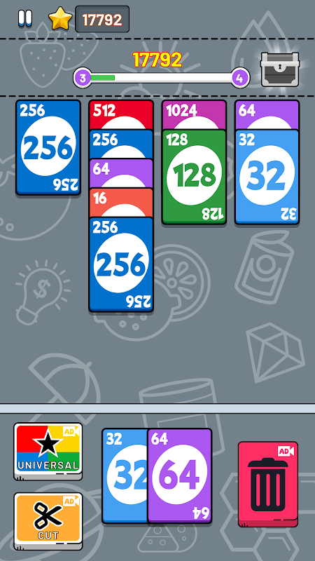 - Stack the same number cards to merge