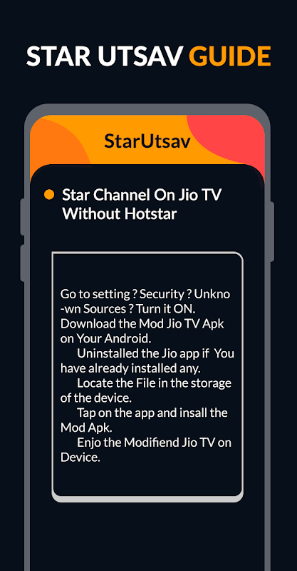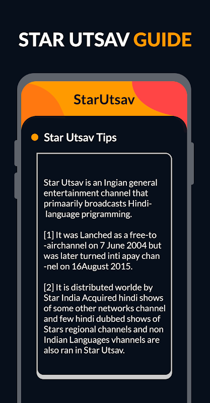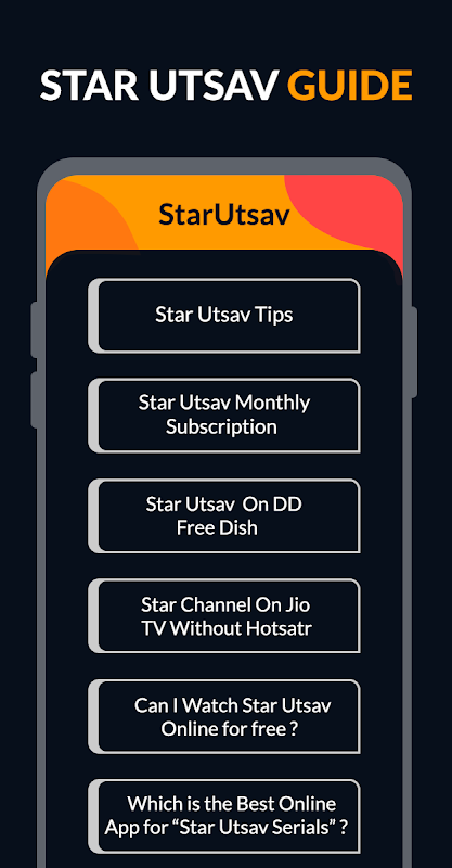 This Free Star Utsav Live TV Channel India serial Guide will teach you the important things that you need to know about how to use Star Utsav any device. The step-by-step guide will make it easy to learn more about features and settings that you need to change for Star Utsav. So if you are new users or just try Star Utsav in first time just let's this app help you.
