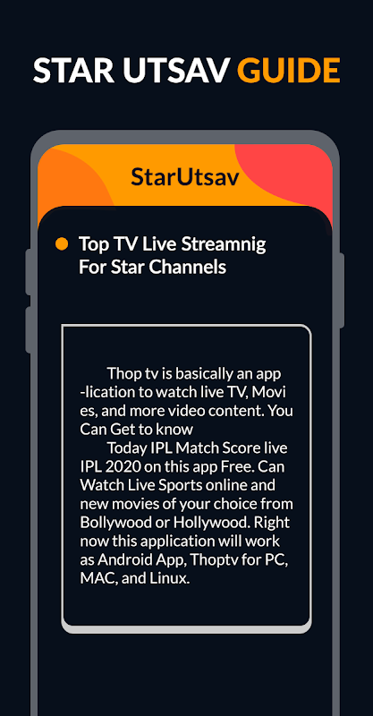 If you don't know how to use it just follow a simple step by step guide in this app. This app is friendly with new users that want to watch favorite channels such as Drama Series Channel at any time , star utsav serial Just try it by yourself and you will love it, Let's this app guide your way to use Star Utsav TV .