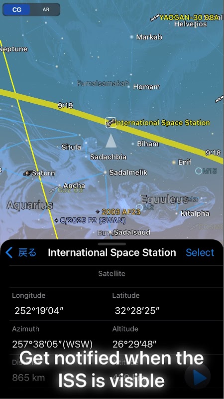 Получайте оповещения о видимых пролётах МКС и метеорных потоках.