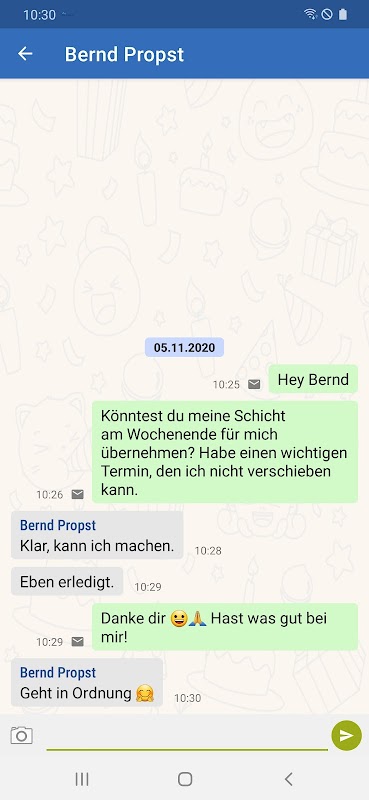 График смены, праздники и сообщения - полностью организовано с приложением сотрудника!