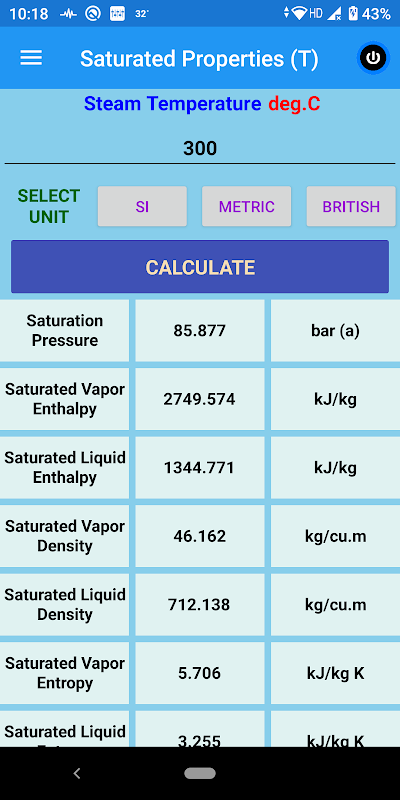 STEAMCAL помогает в расчете насыщенных свойств пара и воды для заданного давления и температуры, свойств перегретого пара для заданных давления и температуры пара и свойств влажного пара для заданного давления и сухости пара. Он также проверяется на наличие сверхкритических параметров пара.