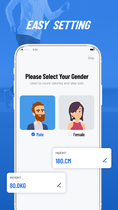 Настройте приложение, указав свои цели и другие основные данные, и все готово! Держите телефон в руках или положите его в сумку, чтобы начать записывать свои шаги. Это будет засчитано, даже если ваш экран заблокирован!