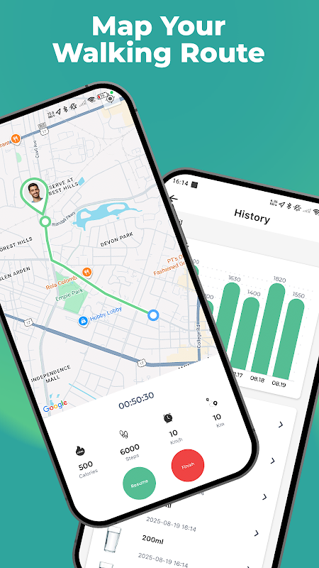 Режим GPS: записывайте ваши пешеходные маршруты на карту с подробной статистикой, такой как темп, время и расстояние.