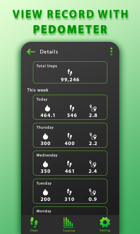Шагер счетчик - фитнес-приложение для всех людей. трекер шагов с бесплатным приложением для подсчета калорий и шагомера для пользователей Android. Следите за шагом и калориями быстрее всего. Приложение «Шагер счетчик шагов» использует встроенные датчики для подсчета и отслеживания пройденных шагов и количества сжигаемых калорий.