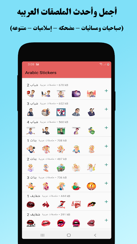 Add stickers and express yourself to your friends and family, and send them the best arabic stickers.