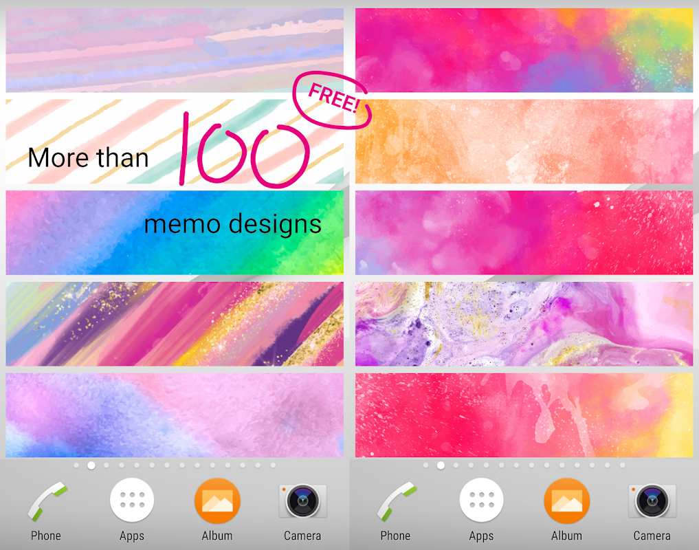 3. Нажмите и удерживайте виджет «Memo Watercolor 2 Free». Вы увидите изображения каждого главного экрана.