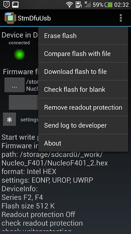 Приложение для перепрошивки содержимого флеш-памяти микроконтроллеров Stm32 через USB кабель.
