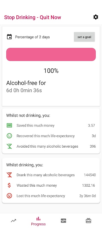Это приложение направлено на то, чтобы помочь вам добиться успеха в прекращении употребления алкоголя.