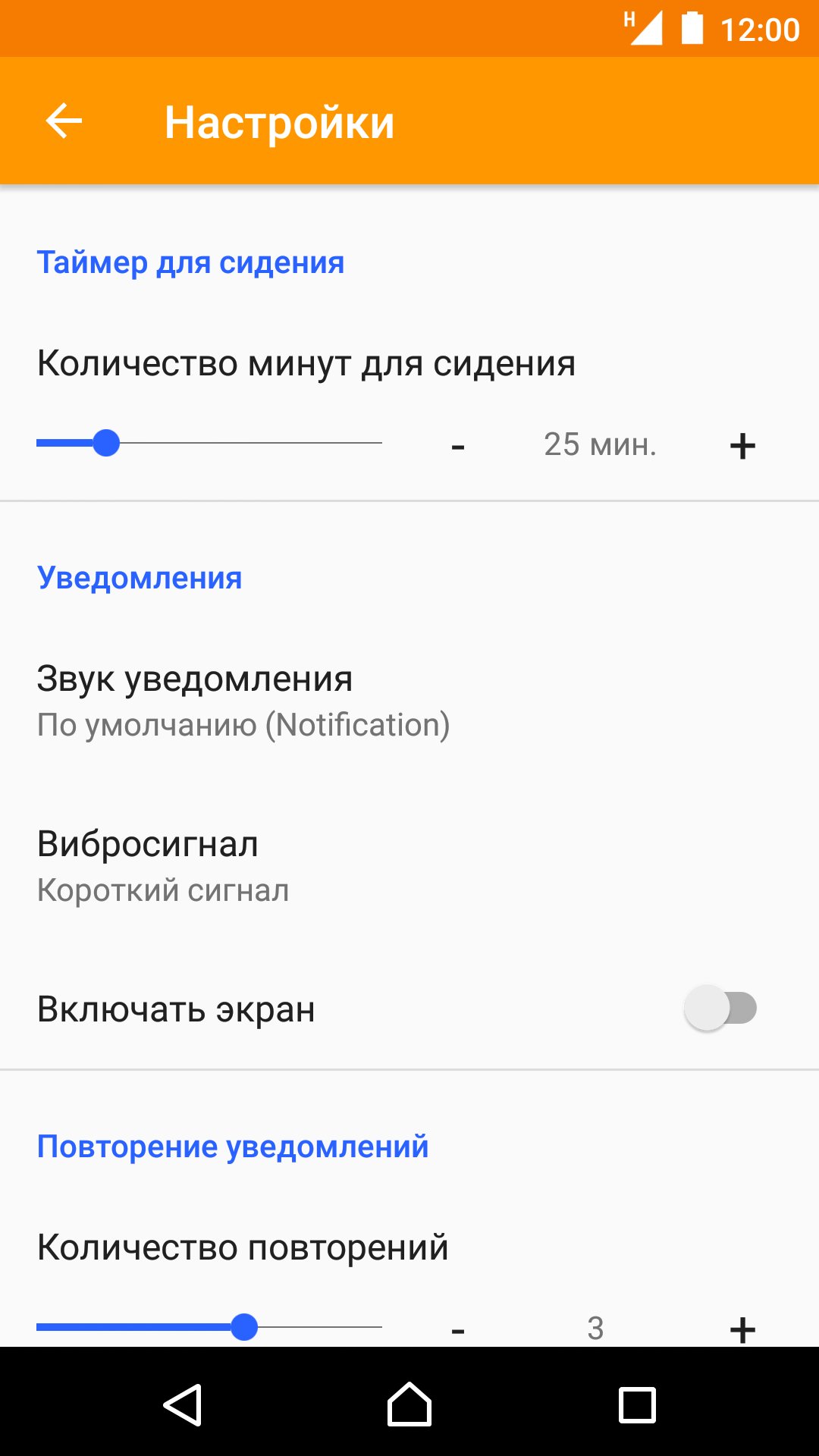• Возможность настроить время для таймеров, уведомления о завершении таймеров, количество повторений уведомлений и интервал между повторениями.