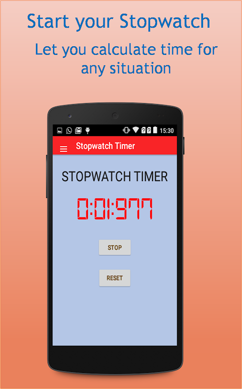 This app will help you to measure the time of any situation, like sports, cooking, games, education, etc. This free stopwatch has the functionality to start, stop and reset at your desire. Small in size, yet flexible for all phones, this stopwatch can be easily utilized. . Start and stop the stopwatch by simply pressing the button on the center
