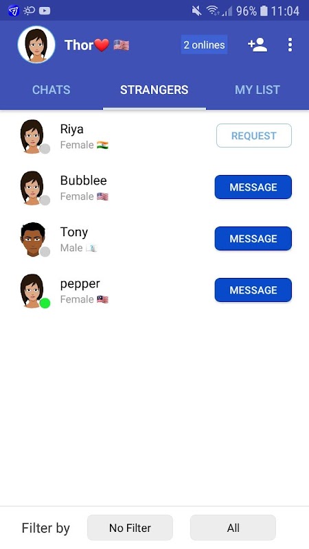 if you are bored, search for the gender you want to talk with, chat whatever you want , share your problems and have a good conversation with other.