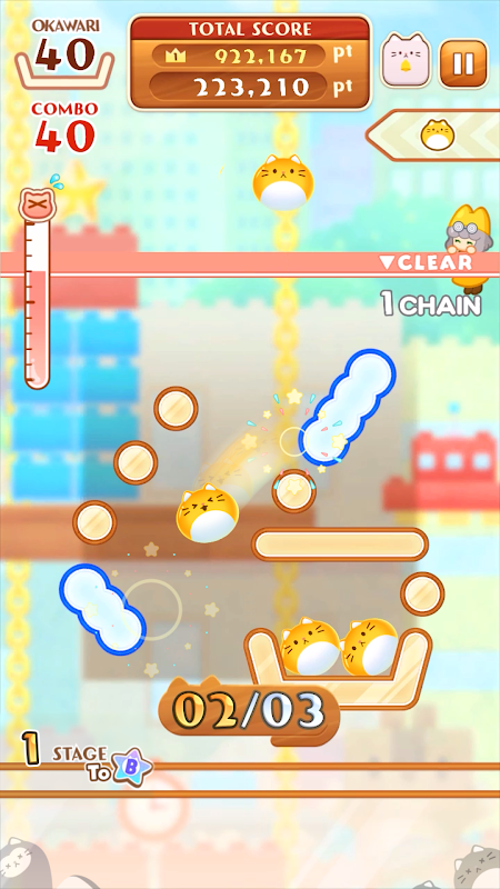 Когда больше некуда складывать, вызовите специальный вспомогательный белый блок кошки, чтобы изменить ход игры.