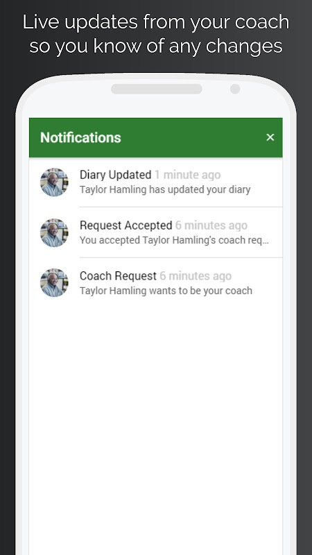 • Notifications to notify you when your coach makes a change to your diary