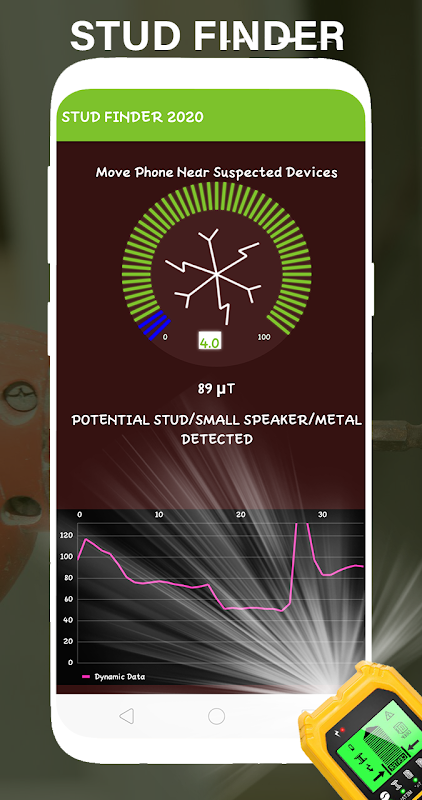 Сканер Stud Finder отлично работает на всех устройствах Android, которые имеют магнитный датчик и обнаружение ЭДС. Откройте приложение металлоискателя и переместите его рядом с любым местом, которое вы хотите обнаружить для шпильки, металла, винта, болта, трубы и проводки. Когда приложение металлоискателя найдет какой-либо металл, оно начнет издавать звуковой сигнал. Приложение Stud Finder на вашем телефоне работает с использованием магнитного датчика и измерителя радиации.