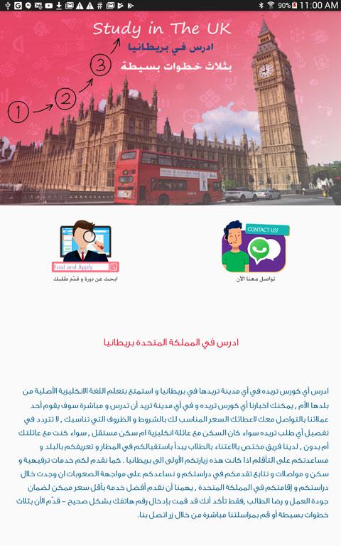Обучение в Великобритании приложений Это позволяет просматривать последние курсы и курсы сделки в университетах, институтах и языковые школах английского языка в Великобритании, и вы можете выбрать один из курсов, что вам подходит, а затем подать заявление с помощью одного клика после размещения вашего номера телефона правильно.
