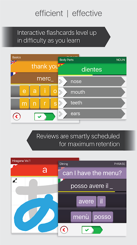 - Флэшкарточки запланированы умные алгоритмы, проверенные, чтобы обеспечить максимальное сохранение.
