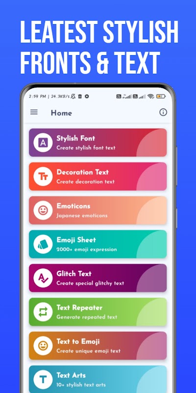 * Stylish Fonts and Text Arts and Text to Emoji Feature :