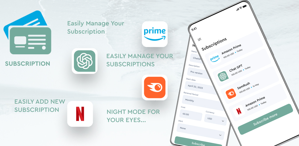 В MergePay Subscription Manager есть мощный трекер подписок, в который уже включено более 200 популярных услуг. От Netflix до Spotify — легко добавляйте подписки и управляйте ими. Трекер обеспечивает полное представление о ваших расходах, позволяя вам отслеживать свои расходы и отслеживать даты предстоящих платежей.