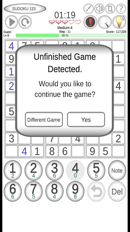 Игра Sudoku 123 автоматически сохраняет ваш прогресс на вашем устройстве, после чего вы можете продолжить с того места, на котором остановились.