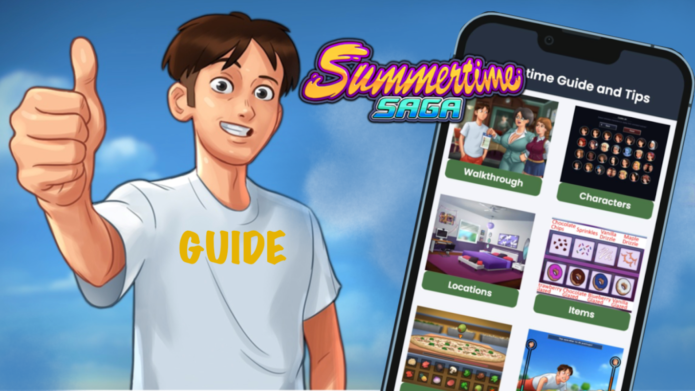 Приложение инструментов Summertime Saga Guide для телефонов Android — это руководство по приложению Summertime Saga Guide. С помощью этого приложения вы можете понять, кто в Summertime Saga. Это приложение Summertime Saga Tips — лучшее приложение для очень легкого понимания игры. Все включает в себя информацию и помощь для приложения Summertime Saga Guide: об игре, если вы застряли, спите, слушайте персонажей, бодрствуйте, пока вам не нужно, зарабатывайте деньги, повышайте свою статистику...