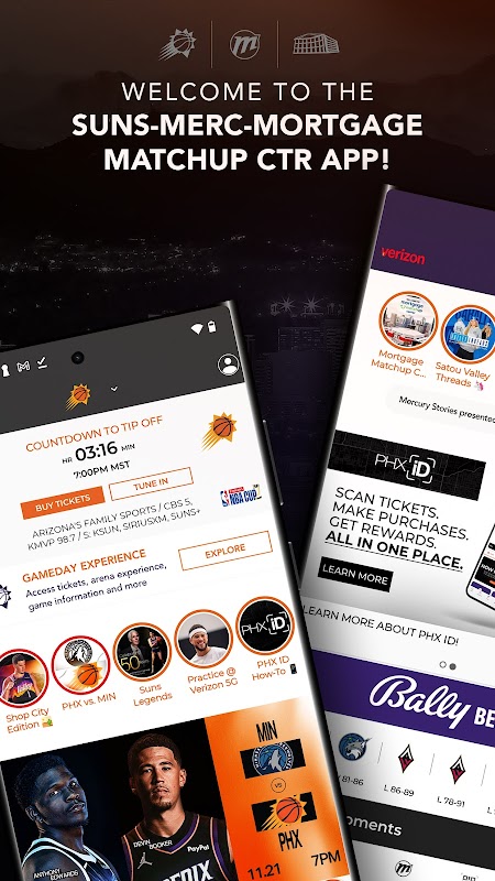 • Легкое переключение между мероприятиями Suns, Merc и Mortgage Matchup Center