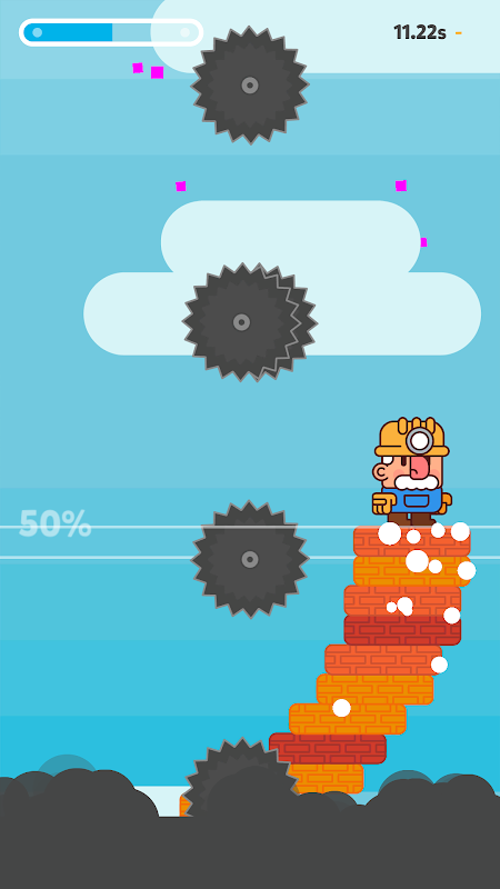 Складывайте кирпичи в небо и постройте свой путь к вершине! Переживите смертоносные пилы и завершите свой строительный проект.
