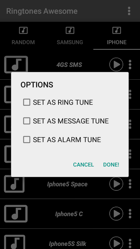 Ringtones Awesome gives user the features to play the music. Ringtones Awesome also allows the user to set music as mobile ringtone. Ringtones Awesome also lets user to set the music as message tune. Using Ringtones Awesome application also allows user to set the music as alarm tone.