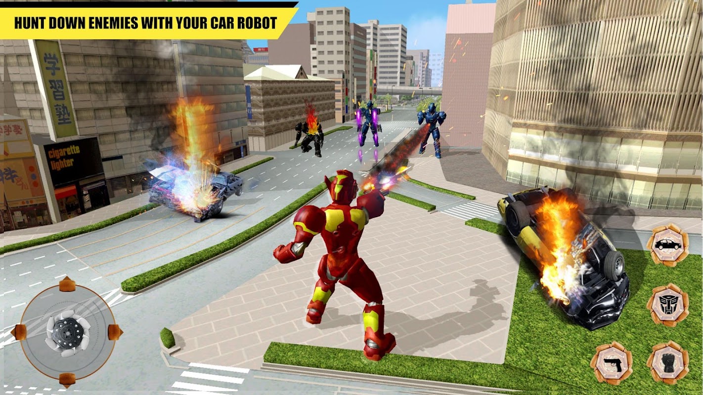 Knock down the rising power by your super action game rage and fire down the camps of your enemy in city environment with full action and super war face. It is setting trends in 2017 games to bring in the capacity of firing, chasing and Robot fighting with an ultimate quality Car and Robot game mode.