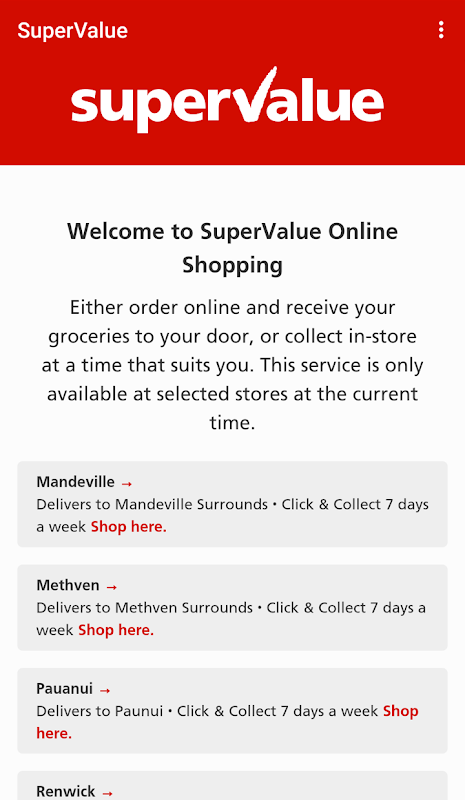Приложение SuperValue позволяет делать покупки онлайн для магазинов SuperValue в Новой Зеландии.